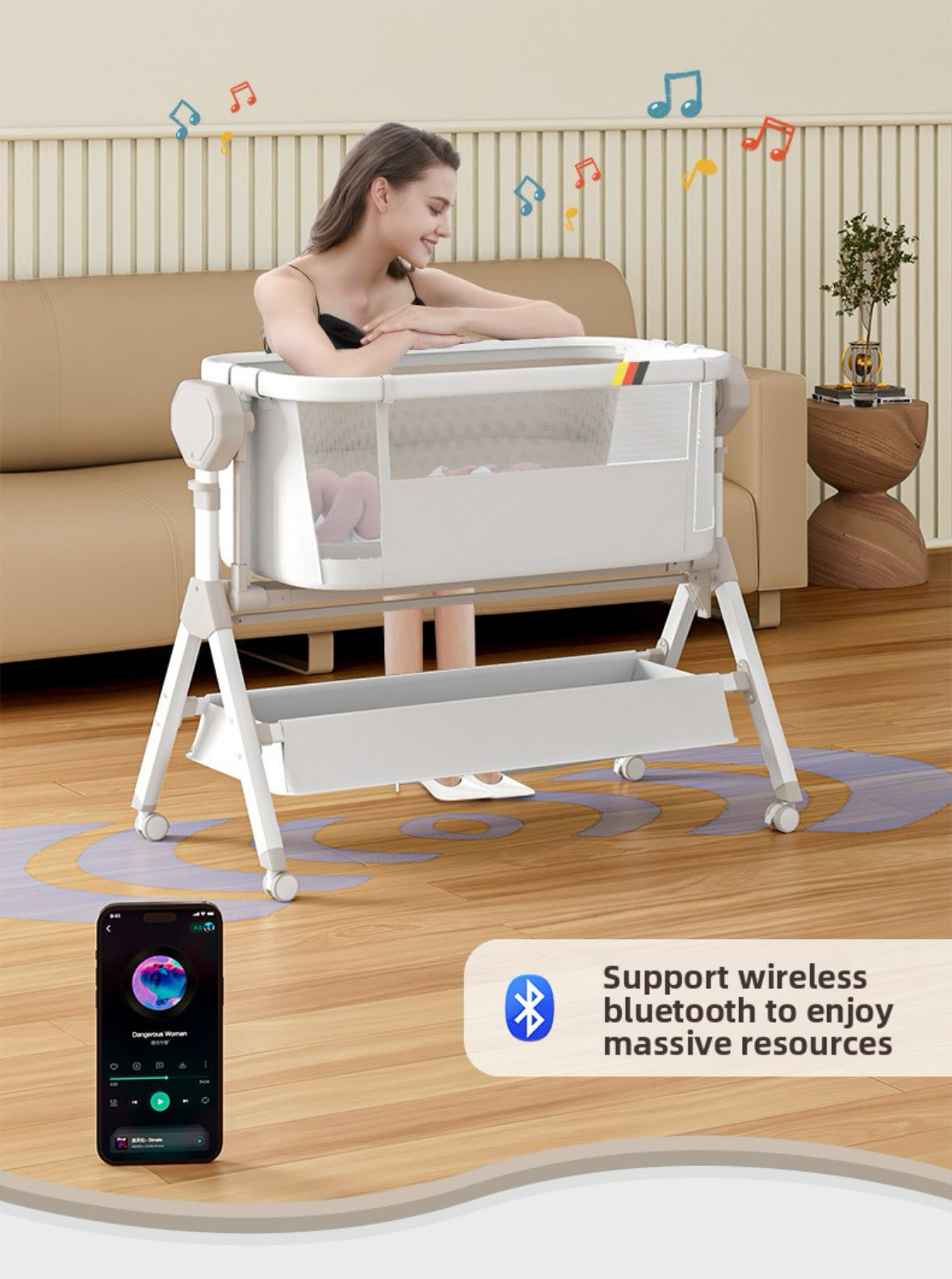 Our BabySure Smart Crib/Cradle responds with a gentle rocking motion of up to 5 adjustable speeds that soothes your baby - just like a mom!